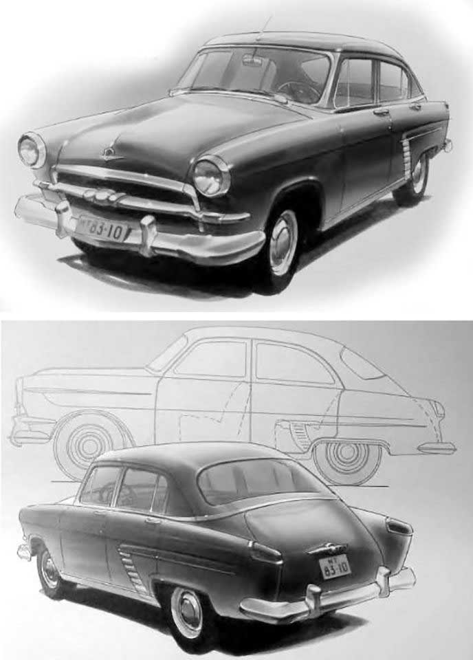 კონსტრუქტორებმა მეორე გზა აირჩიეს – „პობედის“ მასის მქონე ავტომანქანის შექმნა უფრო ფართო, ექვს ადგილიანი სალონით, ტევადი საბარგულით და ძლიერი ძრავით, რაც „პობედაზე“ და „ზიმზე“ დაცდილი ტექნოლოგიების გამოყენების საშუალებასაც იძლეოდა. ამ მოთხოვნებს 50-ან წლებში გამოშვებული მსუბუქი კლასის ამერიკული მანქანები პასუხობდა. კონსტრუქციის შესასწავლად გორკის ქარხნისთვის სხვადასხვა ეტაპზე შეძენილი იყო 1954 წლის ორი Ford Mainline (ექვსი და რვა ცილინდრიანი ძრავით), 1953 წლის Chevrolet 210 და Plymouth Savoy, 1952 წლის Kaiser Henry J, ბრიტანული Standard Vanguard და დასავლეთ გერმანული Opel Kapitän.